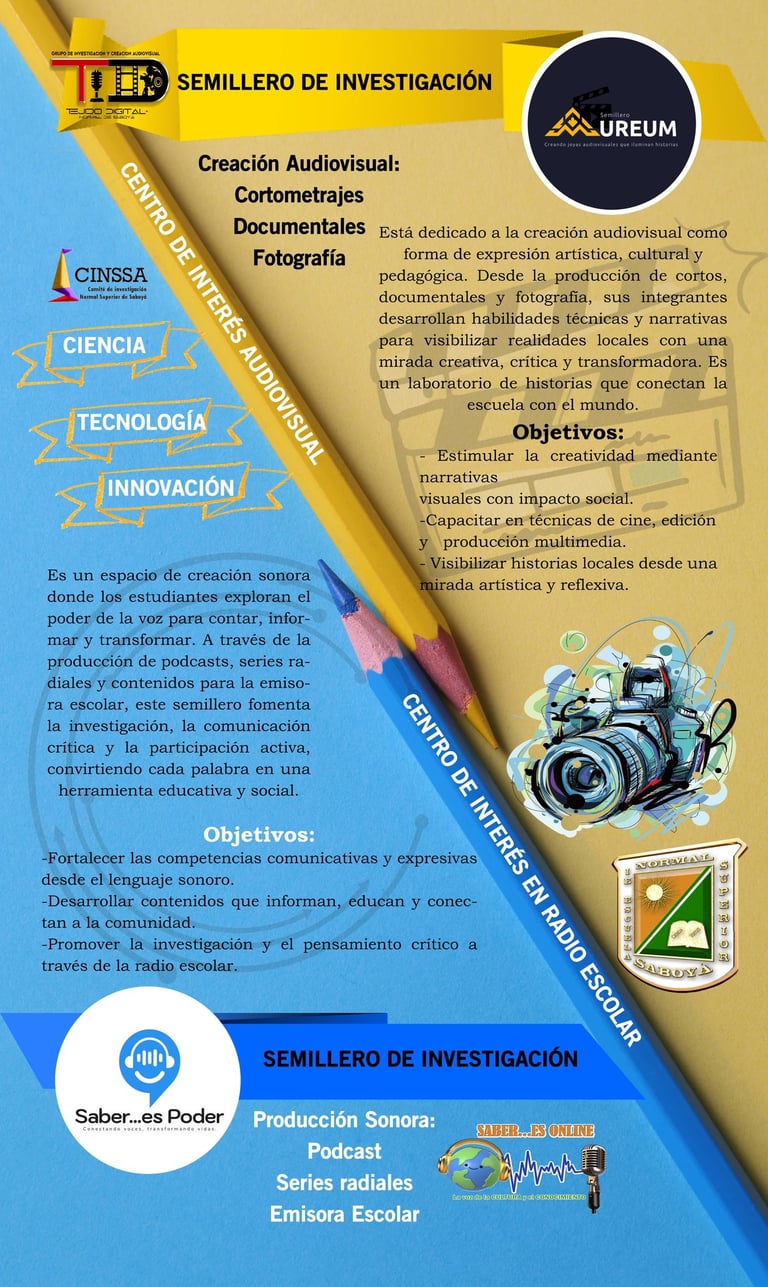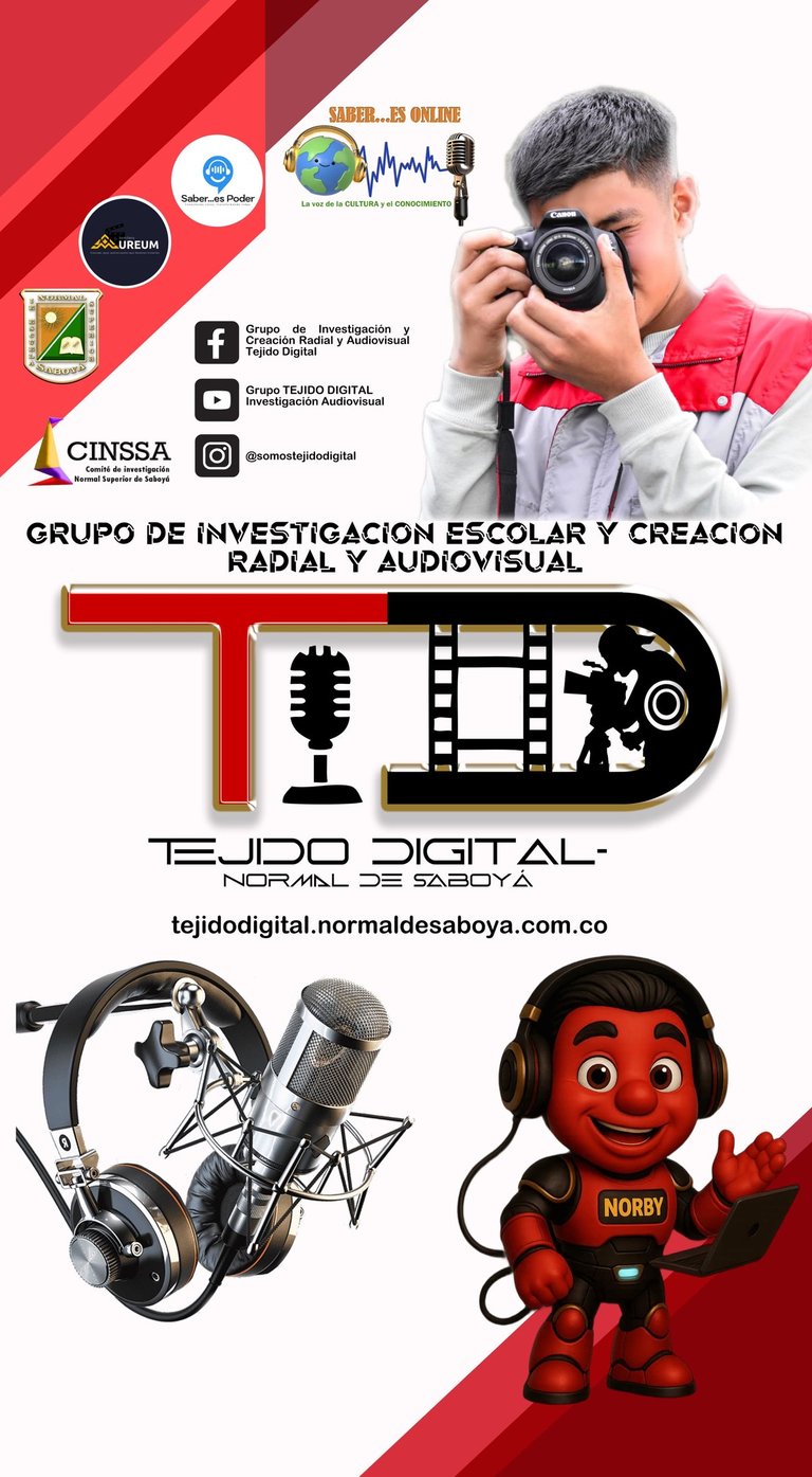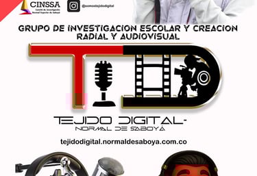 El grupo Tejido Digital es un proyecto de investigación escolar y creación radial y audiovisual de la Escuela Normal Superior de Saboyá, cuyo objetivo es fortalecer la cultura audiovisual mediante la investigación y la producción de contenidos visuales y sonoros. El nombre "Tejido" hace referencia a la riqueza cultural entrelazada en las historias, mientras que "Digital" refleja la modernización de los medios de comunicación, pasando de lo análogo a lo digital. Este grupo integra dos semilleros que abarcan la producción sonora y visual, promoviendo la creatividad, la investigación formativa y la reflexión crítica a través de las tecnologías emergentes.