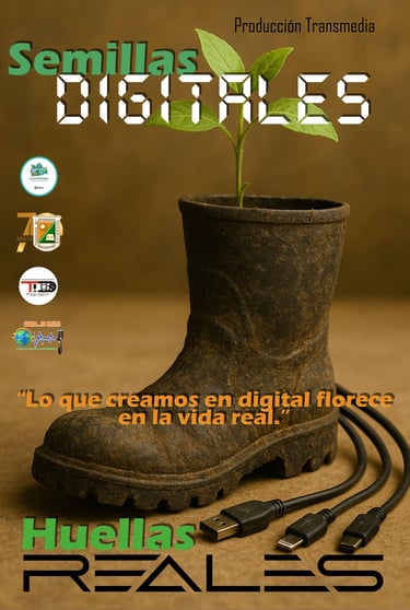 Semillas Digitales, Huellas Reales es una producción transmedia que nace en la Escuela Normal Superior de Saboyá como una apuesta educativa y creativa frente al desafío del cambio climático. Bajo el lema “lo que creamos digital, florece en la vida real”, esta propuesta busca sembrar conciencia ambiental a través de narrativas que combinan lo digital y lo tangible. Cada pieza audiovisual, ilustración, relato y recurso interactivo producido por los estudiantes se convierte en una semilla simbólica que invita a reflexionar sobre el impacto de nuestras acciones en la naturaleza, mostrando cómo las ideas que germinan en el mundo virtual pueden transformarse en prácticas sostenibles en la cotidianidad.